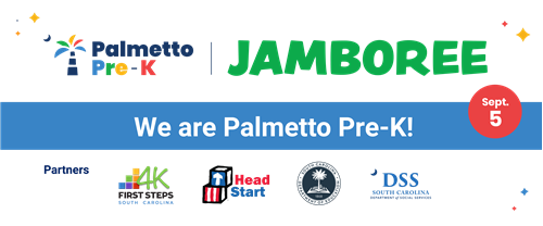 The Palmetto Pre-K Jamboree is a collaboration between the SC Department of Education, Head Start, SC First Steps and the SC Department of Social Services and is supported by the Preschool Development Grant Birth through Five Initiative (PDG B-5), from the Office of Child Care, Administration for Children and Families, U.S. Department of Health and Human Services.